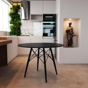 Mesa Eiffel Wood Tampo De Madeira 90 Cm Preto Pés Pretos New Green - Cor: Preto