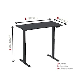 Mesa Elétrica com Regulagem de Altura 120cm(L) Preto -