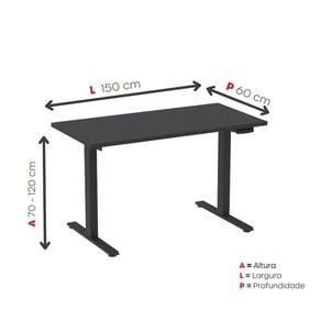 Mesa Elétrica com Regulagem de Altura 150cm(L) Preto -