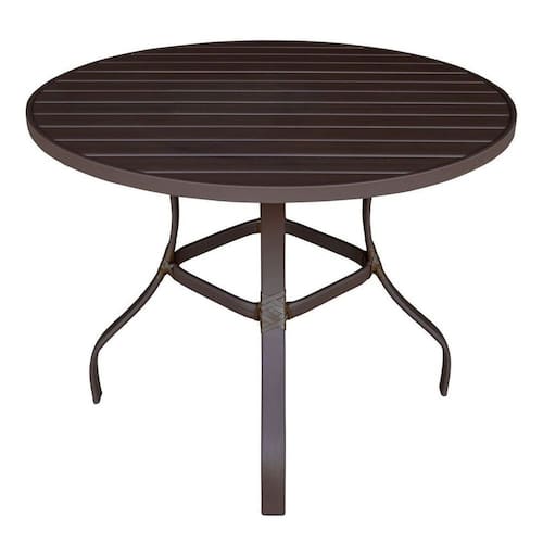 - Peça produzida em alumínio (Pés oblongo e tampo ripado).