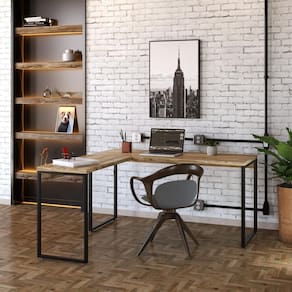 Mesa Em L Kuadra Diretor 150x150x75cm Carvalho / Est.preta Carvalho / Est.preta