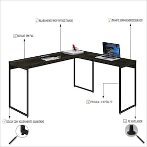 Sobre o ProdutoMesa em L Dynamica Diretor 150X140X75cm Branco Chess / Est.PretaDescrição do Produto:A Mesa L Diretor DYML5150 é um produto prático e versátil, que pode ser utilizado em diversos ambientes, como quarto e escritório, na sala, cozinha ou seu depósito.A Linha Dynamica reúne design minimalista e praticidade, traços retos e móveis versáteis são as características dessa coleção. As estruturas metálicas possuem pintura Epóxi e sapatas niveladoras e, nos tampos, MDP Perffect Acetinado com fitas de borda em PVC. Itens Inclusos:1 Mesa LDimensões dos Produtos:Mesa em L Dynamica Diretor 150X140X75cm Branco Chess / Est.Preta: 150 x 140 x 75 cmInformações Logísticas (Comp. X Prof. X Alt.):Vol.01: 154 x 54 x 11 cm Peso: 20,5 KgPeso Total: 20,5 KgObservações:Não acompanha acessórios decorativos. Imagens meramente ilustrativas.Informações Técnicas / Características: Cor do Produto: Branco Chess / Est.Preta Cor do Predominante: Branco Marca: Compace Modelo: DYML5150 Linha: Dynamica Material: Mdp Material da Estrutura / Pés: Aço Acabamento: Perffect Acetinado Escala de Brilho: Fosco Fita de Borda: Pvc Possui Gavetas: Não Possui Pés: 2 Pés Niveladores: Sim Acabamento Estrutura: Epóxi-Pó Texturizado Formato: Em L Suporta Até (kg): 45 kg Comprimento: 150cm Profundidade: 140cm Altura: 75cm Peso Líq.: 19,42Kg Recomendações de Uso, Manutenção e Limpeza: Para a limpeza, utilize flanela seca ou pano macio levemente umedecido em água. Utilize um pano seco em seguida. Evite contato com produtos químicos (solventes, thinner, acetona, etc) e não utilize nenhum tipo de esponja de aço. Necessita de Montagem: Sim / Acompanha Manual de Montagem Complexidade da Montagem: Média: pode ser montado por mais de uma pessoa e/ou necessite de maior conhecimento para montagem. Garantia: 6 meses