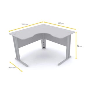 - Dimensões: 74 cm de altura x 120 cm de largura (mesa 1) x 120 cm de largura (mesa 2) x 61,5 cm de profundidade.