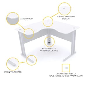 Uma estação de trabalho espaçosa para que você ou sua equipe se sintam confortáveis, produtivos e com toda a segurança e privacidade para trabalhar com vontade. Nesta mesa em L branca, você encontra praticidade, funcionalidade e a peça que faltava para mobiliar seu escritório. Com resistência e durabilidade garantidas graças a uma estrutura bem pensada e à qualidade da Pandin, organizar uma planta de estações de trabalho prática e esteticamente agradável com esta mesa em L fica fácil, fácil. Além de funcionar como mesa de trabalho, ela permite a realização de atendimentos ao cliente ou rápidas entrevistas ou reuniões, graças ao seu formato, que ainda conta com detalhes como passa-fios e pés niveladores. Invista neste móvel e facilite o dia a dia da sua equipe, empresa, escola, consultório, hospital, instituição, clínica, companhia de telemarketing, departamento de atendimento ou até mesmo seu home-office. Surpreenda-se com esta mesa da linha Maxxi da Pandin e conheça em nossa loja mais opções desta linha completa que pode mobiliar seu escritório com qualidade, beleza e economia.