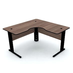 - Estação de trabalho no formato de mesa em L confeccionada em madeira (MDP).