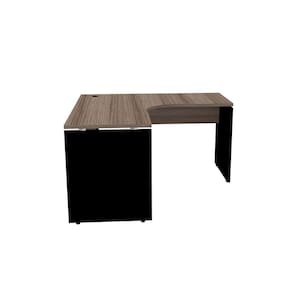 A mesa em L que seu time de telemarketing pediu ou a mesa em L que seu consultório está precisando? Tanto faz. Essa mesa elegante e versátil, no duo de cores walnut (madeira escura) e preto, é polivalente. Qualquer função que peça o uso de mais de um monitor, atendimento de clientes e pacientes com mais comodidade ou mesmo reuniões rápidas e entrevistas, como por exemplo, diretoria ou recursos humanos cabe nessa mesa. Consegue pensar em mais usos? Escritórios de advocacia, lojas, salas de diretoria escolar... esse L é de longa lista de utilidades! Além de ser uma boa ajuda para aproveitar cada metro do seu escritório, essa mesa em L vem com a possibilidade de instalação de gaveteiros aéreos (comprados separadamente). Com ela, você garante máximo conforto para seu dia a dia no trabalho, aumentando a produtividade e organização do ambiente - e seu escritório ganha um novo aspecto e mais elegância com apenas uma peça. Esse produto faz parte da Linha P25 da Pandin, uma linha com design clássico e cheia de estilo, com diferentes combinações de cores, perfeita para diversos profissionais e ambientações.
