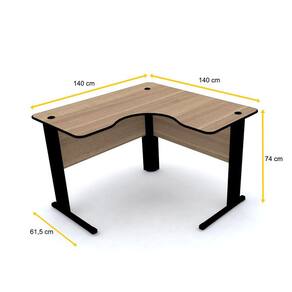 - Dimensões: 74 cm de altura x 140 cm de largura (mesa 1) x 140 cm de largura (mesa 2) x 61,5 cm de profundidade.