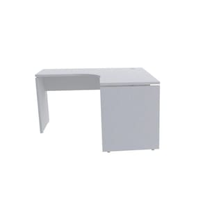 - Estação de trabalho no formato de mesa em L confeccionada em madeira (MDP).