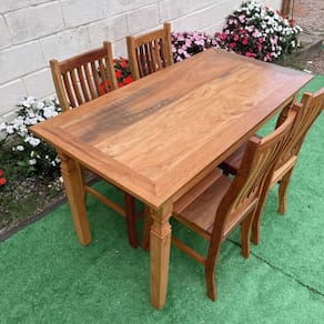 A Mesa Rústica em Madeira De Demolição 140x70cm com 04 Cadeiras Anatômica da Sudeste Rústico é para você que procura uma peça tradicional e confortável. Altamente resistente e durável, a mesa possui 1,40 m de comnto e 0,70 cm de largura, acompanha 4 cadeiras com encosto abaulado, gerando conforto com sensação de abraçar suas costas. Produzida em madeira de demolição. É perfeita para reunir a familia em áreas gourmet, áreas de churrasco, cozinhas e salas de jantares . Deixe seu ambiente ainda mais bonito e sofisticado com A Mesa e as cadeiras em Madeira de Demolição da Sudeste Rústico.