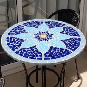 Especificações técnicas do mosaico: Feito com cerâmicas e porcelanas de alta resistência; Borda com acabamento em mosaico Vem montado sobre uma chapa cimentícia leve, o que permite leveza ao mesmo tempo, de alta durabilidade; Resistência e Durabilidade em área interna e externa; Espessura de 20mm Espessura igual à tampos de mármore ou granito Liso e agradável para uso diário; Mosaico feito integralmente à mão com técnica do mosaico romano.