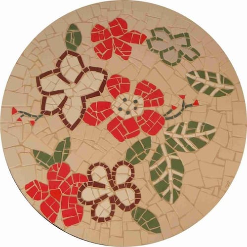 Especificações técnicas do mosaico: Feito com cerâmicas e porcelanas de alta resistência; Borda com acabamento em mosaico Vem montado sobre uma chapa cimentícia leve, o que permite leveza ao mesmo tempo, de alta durabilidade; Resistência e Durabilidade em área interna e externa; Espessura de 20mm Espessura igual à tampos de mármore ou granito Liso e agradável para uso diário; Mosaico feito integralmente à mão com técnica do mosaico romano;Dúvidas frequentes: Como é transportado? O mosaico é protegido em plástico bolha e é colocado uma espuma ao longo de toda a borda do mosaico e por fim é embalado em uma caixa de papelão. Em caso de tamanhos maiores, também é colocado em uma caixa de madeira. A transportadora coleta aqui em nosso ateliê e no seu .