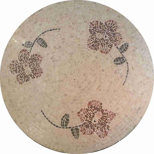 Especificações técnicas do mosaico: Feito com pedras - Mármores e granitos de todo o Brasil e importados da Europa e Ásia - para obter todas as cores desejadas em pedras naturais; Borda com acabamento em mosaico Vem montado sobre uma chapa cimentícia leve, o que permite leveza ao mesmo tempo, de alta durabilidade; Resistência e Durabilidade em área interna e externa; Espessura de 20mm Espessura igual à tampos de mármore ou granito Liso e agradável para uso diário; Mosaico feito integralmente à mão com técnica do mosaico romano.