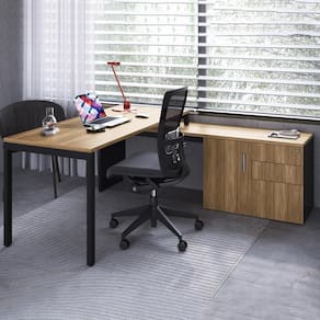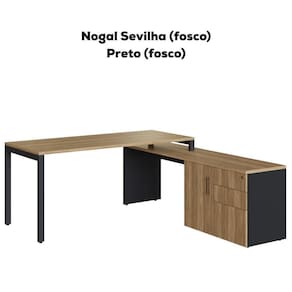 Conjunto de Mesa e Balcão Concept para Escritório alia funcionalidade e organização para ambientes de trabalho. Estrutura em MDP 15 mm (tampo da mesa 25 mm) com acabamento em pintura BP. Possui porta com dobradiça metálica, 3 gavetas (uma com trava por chave e um gavetão para pasta suspensa), base metálica em aço carbono e sapatas reguláveis com travessa antiempenamento. O balcão flex permite montagem à direita ou esquerda, conforme preferência. Entregue em 3 volumes.