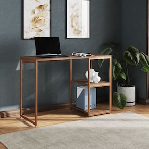 Mesa Escritório Berlim Industrial com Prateleira Ferro Cobre Tampo 110x46 Amêndoa - Marrom