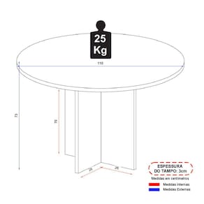 Diferenciais: - Produzida em MDP de reflorestamento: durável e ecologicamente correta. - Acabamento em BP: superfície sofisticada e fácil de limpar. - Tampo redondo de 30mm: resistente, suporta até 25kg com estabilidade e segurança. - Pés robustos de painéis de 25mm: garantem firmeza e um visual moderno. - Sapatas niveladoras: mantêm a mesa estável. - Design versátil: combina facilmente com diferentes estilos de decoração e mobiliários corporativos.