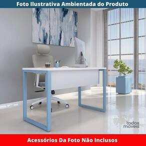 Mesa Escritório P25 Tub Pandin 120 Cm (larg) Tampo Mdp Branco Pé Aço Tubular Azul Dali