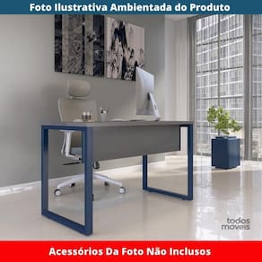 Mesa Escritório P25 Tub Pandin 120 Cm (larg) Tampo Mdp Grafito Pé Aço Tubular Azul Del Rey