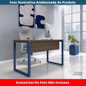 Mesa Escritório P25 Tub Pandin 120 Cm (larg) Tampo Mdp Walnut Pé Aço Tubular Azul Del Rey