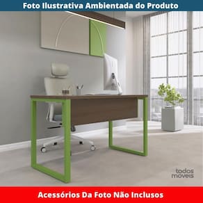 Mesa Escritório P25 TUB Pandin 120 cm (larg) Tampo MDP Walnut Pé Aço Tubular Verde Mirô - Marrom
