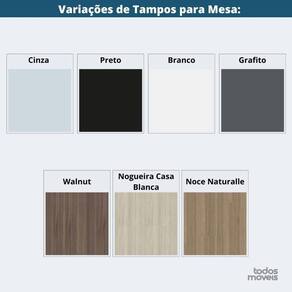 A retaguarda da mesa, feita em MDP BP de 15mm, mede 1224mm (L) x 250mm (P) x 15mm (E), e é fixada através de duas canaletas de aço, assegurando estabilidade e suporte adequado. Os pés tubulares, confeccionados em chapa de aço 18 (1,20mm) e disponíveis em diversas cores, possuem ponteiras sextavadas que permitem ajuste de altura, garantindo nivelamento e maior estabilidade.