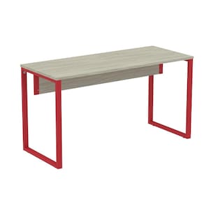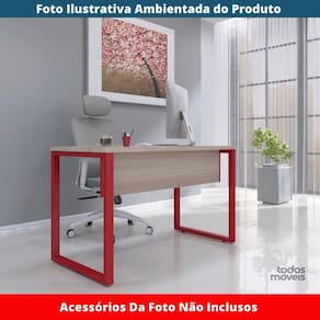 Mesa Escritório P25 TUB Pandin 134 cm (Larg) Tampo MDP Nogueira Casablanca Pé Aço Tubular Vermelho - Bege