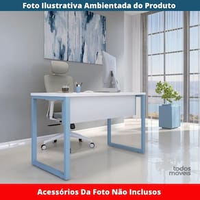Mesa Escritório P25 TUB Pandin 150 cm (Larg) Tampo MDP Cinza Pé Aço Tubular Azul Dali