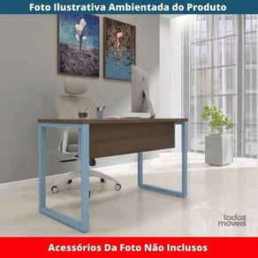 Mesa Escritório P25 Tub Pandin 150 Cm (larg) Tampo Mdp Walnut Pé Aço Tubular Azul Dali