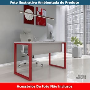 Tampo: Confeccionado em MDP BP de 25mm, composto por partículas de média densidade unidas por resinas sintéticas. O tampo é revestido por ambas as faces com uma folha celulósica decorativa impregnada com resina melamínica, utilizando o processo de prensagem de baixa pressão. Acabamento com fita em PVC de 2mm nas bordas, garantindo resistência e durabilidade.