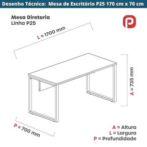 A Mesa Reta 1700x700 da linha P25 TUB combina robustez, funcionalidade e um design moderno, sendo ideal para ambientes corporativos e escritórios. Com tampo em MDP de 25mm e pés tubulares com ponteiras sextavadas reguláveis, proporciona estabilidade e durabilidade, além de um acabamento refinado.