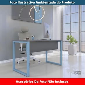 Mesa Escritório P25 Tub Pandin 90 Cm (larg) Tampo Mdp Grafito Pé Aço Tubular Azul Dali