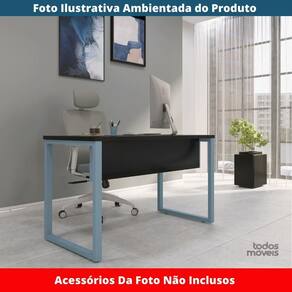 Mesa Escritório P25 TUB Pandin 90 cm (Larg) Tampo MDP Preto Pé Aço Tubular Azul Dali