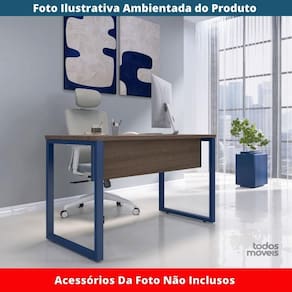 Mesa Escritório P25 Tub Pandin 90 Cm (larg) Tampo Mdp Walnut Pé Aço Tubular Azul Del Rey