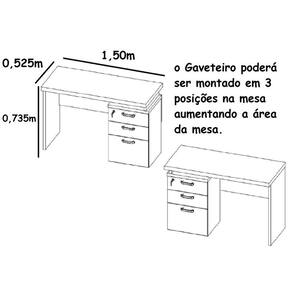 Mesa Escritório Web30 1,50x0,525 c/ Gaveteiro Marsala/Preto