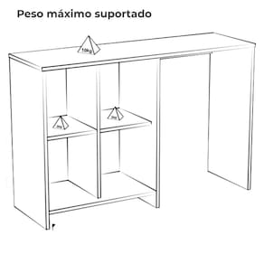Peso máximo suportado: 16kg (tampo 10kg e nichos 3kg cada)