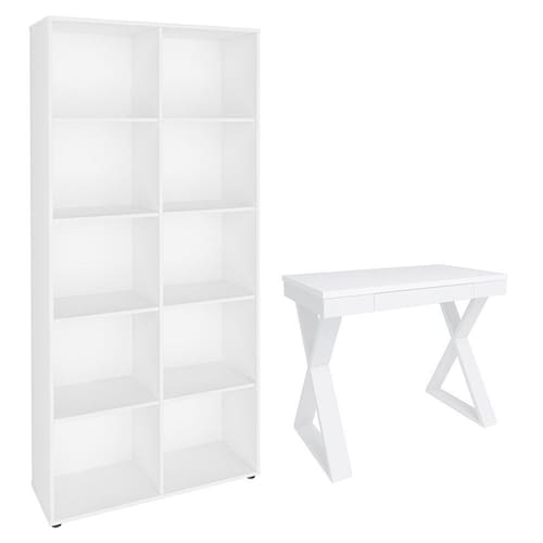 Esse conjunto moderno foi projetado para aumentar a produtividade e dar um toque de sofisticação a qualquer cômodo. A escrivaninha com pés em “xis” dá aquele toque de charme na decoração, ao passo que oferece espaço extra na gaveta. Já a estante multiuso apresenta 8 nichos espaçosos para organizar seus documentos, decoração e livros favoritos. Além disso, ambos são fabricados com materiais de qualidade, ou seja, foi feito para durar e resistir ao uso diário. Quer esteja trabalhando ou estudando, esse é o complemento perfeito para criar um ambiente confortável e inspirador. Eleve a experiência de seu home office hoje mesmo.