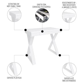 Peso Suportado: Mesa: 10 kg, Estante: 10 kg.