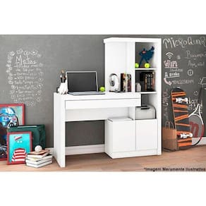 Escrivaninha p/ Escritório ME4143 c/ 2 Portas e 1 Gaveta Branco - Tecno Mobili
