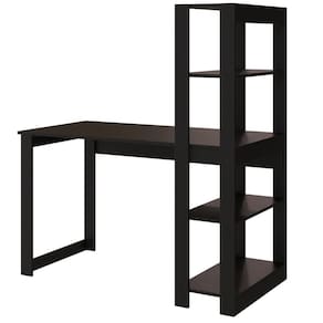 Mesa Escrivaninha c/ Estante 4 Prateleiras Licce Preto - Uma mesa office com espaço para trabalho e para organizar seus documentos