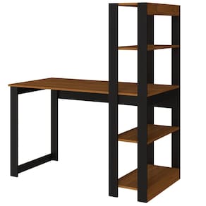 Mesa Escrivaninha c/ Estante 4 Prateleiras Licce Preto/Freijó - Uma mesa office com espaço para trabalho e para organizar seus documentos