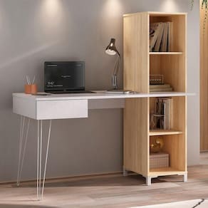 Transforme seu espaço com a elegante Mesa Escrivaninha com Estante Orizon A06 Terrazza/Carvalho, da Mpozenato, que une estilo e funcionalidade!