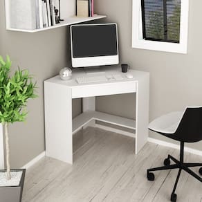 A Mesa Escrivaninha de Canto com 1 Gaveta ME4169 Branco Tecnomobili oferece um design elegante e funcional, ideal para otimizar o espaço do seu ambiente de trabalho. Com acabamento BP e material em MDP, proporciona durabilidade e praticidade. A gaveta com capacidade de 3kg oferece um armazenamento seguro para seus objetos essenciais, enquanto o tampo suporta até 15kg, garantindo resistência e estabilidade.   CARACTERÍSTICAS TÉCNICAS: - Produzido em MDP; - Acabamento em Pintura UV na cor Branca; - Possui 1 gaveta; - Suporta até 15kg no tampo e 3kg na gaveta.   *PRODUTO ENTREGUE DESMONTADO.   DIMENSÕES: Altura: 74,5 cm Largura: 76,5 cm Profundidade: 76,5 cm Peso: 17,1 kg   INFORMAÇÕES ADICIONAIS: - ATENÇÃO: Não realizamos montagem do móvel e não nos responsabilizamos por danos durante o processo. A montagem e instalação são de responsabilidade do comprador. Verifique o produto antes de montá-lo, pois não aceitamos trocas de itens montados ou danificados por montagem. - Imagens Ambientadas: As imagens são meramente ilustrativas e podem mostrar itens que não fazem parte do produto. As cores do produto podem variar conforme o monitor, a iluminação do ambiente ou a percepção visual. - Limpeza: Utilize pano macio e seco ou levemente umedecido com água e sabão neutro. Evite o uso de abrasivos como palha de aço ou objetos cortantes. Garantia: Garantia contra defeitos de fabricação, conforme o Código de Defesa do Consumidor.