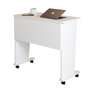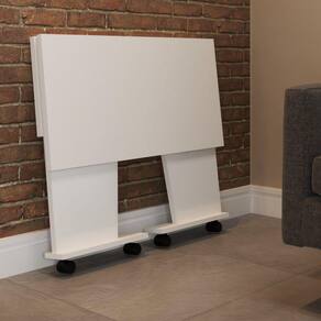 O(a) Mesa Escrivaninha Dobrável Alpes com Rodízio Branco - Loja é produzido em MDP na escala de brilho Fosco, e possui um grau de dificuldade de montagem: Fácil.