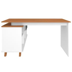 Além do design moderno e tonalidades sóbrias que harmonizam facilmente com qualquer ambiente e ainda dá aquele toque na decoração, essa mesa home office também é sinônima de versatilidade. Primeiro, por ser uma mesa em L leva otimização na circulação do cômodo, como proporciona uma ampla área de trabalho, segundo porque possui montagem , ou seja, você optar o lado que melhor se adequa ao seu ambiente; terceiro, possui traseira revestida, o que permite você aproveita-la em qualquer posição, inclusive como divisor de ambientes. Para completar a lista de atributos, os pés retrô agregam ainda charme à peça, ao passo que os nichos e gavetas amplas garantem espaços extras para organização de diversos materiais e objetos.