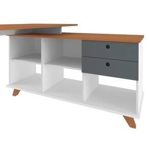 Com a Mesa Escrivaninha em L 2 Gavetas e Nichos Golden A06 Freijó/Grafito/Branco, da Mpozenato, a sua rotina no escritório ou home office será muito mais produtiva e agradável.