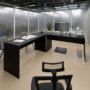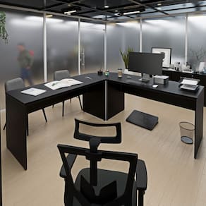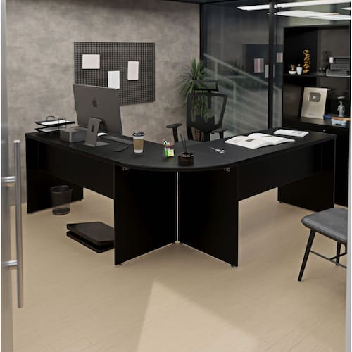 Eleve o estilo do seu escritório com a Mesa em L Arredondada. Um design moderno e impecável que harmoniza com qualquer decoração.