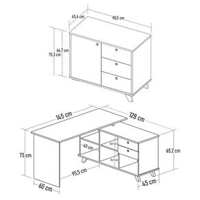 Excelente para quem busca praticidade e estilo na hora de montar seu escritório ou cantinho de estudo, a Mesa Escrivaninha em L Golden e Balcão 1 Porta 3 Gavetas Merano A06 Olmo/Branco, da Mpozenato, é a escolha perfeita para isso, a começar pelo design moderno e despojado.