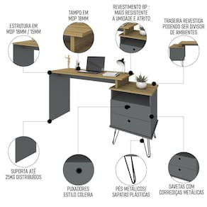 A Mesa Escrivaninha Estilo Industrial Lux A06 olmo/Grafito, da Mpozenato, possui um design moderno e elegante, perfeito para pessoas com gosto exigente.