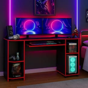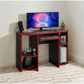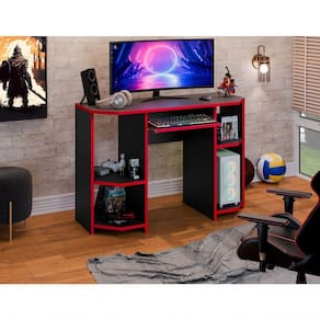 Mesa Escrivaninha Gamer Computador Notebook Estudo Trabalho - Preto | Vermelho