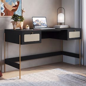 A Mesa Escrivaninha Home Office Pé Metal Arlo A10 Nero/Dourado, da Mpozenato, é a escolha ideal para quem busca um ambiente de trabalho ou estudo que combine organização e elegância.