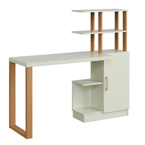 Mesa Escrivaninha Industrial 1 Porta 100% Mdf Off White/Freijó/Gold F17 - Pradel - Bege